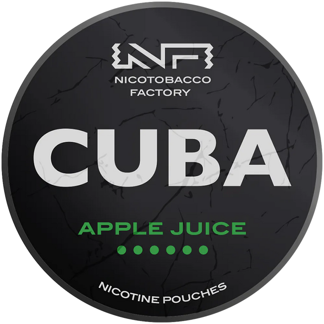 CUBA Black Apple Juice Slim is a tobacco-free snus with an delicious apple juice flavor. Each can contains 20 black-colored pouches, offering a strong and fruity nicotine experience.