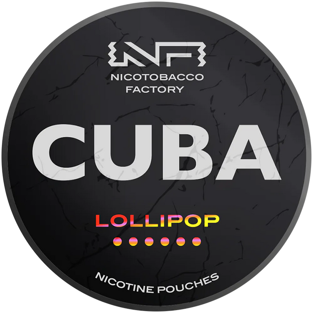 CUBA Black Lollipop Slim is a tobacco-free snus with an candylicious lollipop flavor. Each can contains 20 black-colored pouches, offering a strong and sweet nicotine experience.