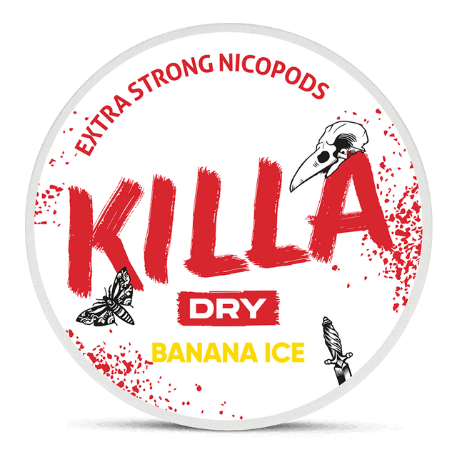 Killa Dry Banana Ice brings sweet tropical banana with a refreshing icy twist in slim all‑white nicotine pouches designed for a balanced yet satisfying experience. At a medium **12.8 per pouch | 16 per gram** nicotine profile, these pouches deliver a smooth flavour and cool finish without tobacco. Produced by NGP Europe under the Killa Dry range, this format offers reliable delivery and minimal moisture for discreet use. Ideal for those who enjoy fruity flavours with a crisp menthol edge and a comfortably strong nicotine hit anytime. A great choice if you like exotic fruit taste paired with refreshing coolness.